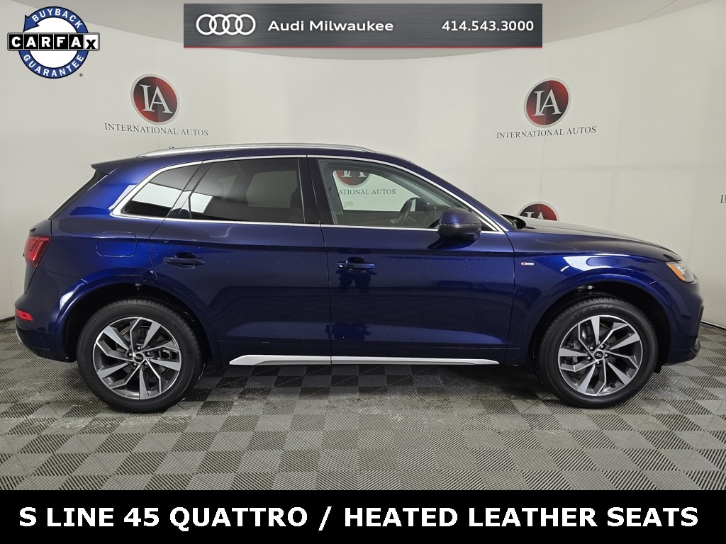 Clean CARFAX. Navarra Blue Metallic 4D Sport Utility 2022 Audi Q5 45 S line Premium quattro quattro 7-Speed Automatic S tronic 2.0L Turbocharged