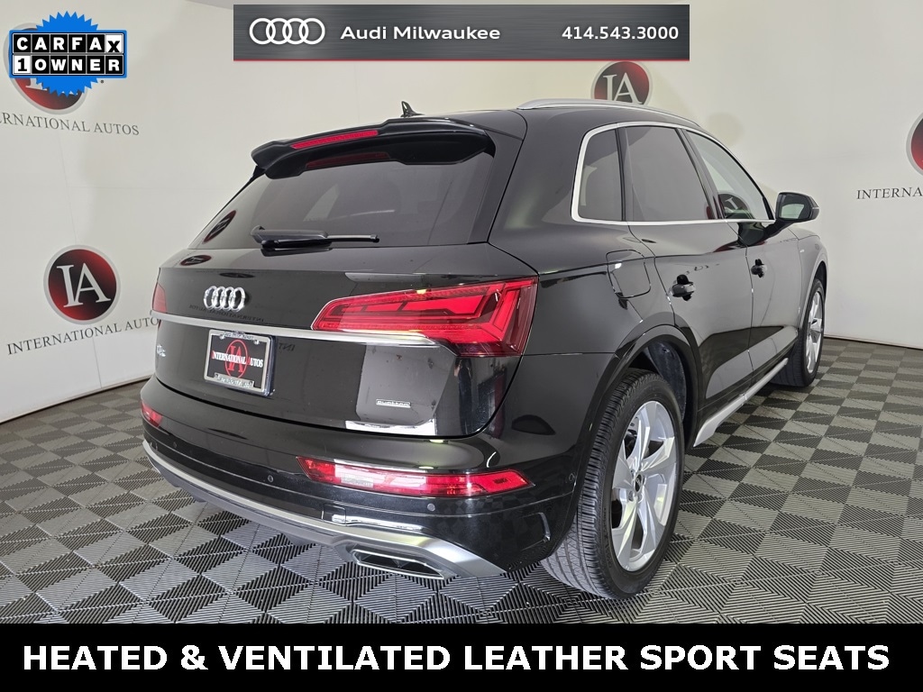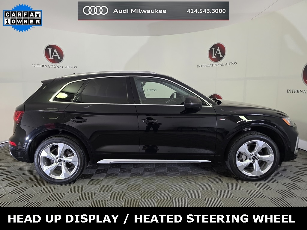 CARFAX One-Owner. Mythos Black Metallic 2023 Audi Q5 45 S line Prestige quattro quattro 7-Speed Automatic S tronic 2.0L Turbocharged Black w/Leather Seating Surfaces, ABS brakes, Alloy wheels, Audi Active Lane Assist, Audi Advanced Key, Audi Beam-Rings, Audi Phone Box, Audi Virtual Cockpit Plus, Automatic temperature control, Bang & Olufsen Sound System w/3D Sound, Compass, Convenience Package, Delay-off headlights, Driver Seat Memory, Dual Pane Acoustic Glass for Front Side Windows, Exterior Parking Camera Rear, Hands-On Detection Steering Wheel, Head-Up Display, Heated & Cooled Front Cup Holder, Heated 8-Way Power Front Bucket Seats, Heated door mirrors, Heated front seats, Heated Rear Seats, Heated Steering Wheel, Leather Seating Surfaces, Leatherette Covered Center Console & Door Armrests, LED Interior Lighting Plus Package, Matrix-Design LED Headlights w/Headlight Washers, Navigation Package, Outside temperature display, Panoramic Sunroof, Park Assist, Power Adjustable Steering Column, Power Liftgate, Prestige Package, Rain sensing wipers, Security system, Top View Camera System, Traffic Jam Assist, Traffic Sign Recognition, Warm Weather Package, Wheels: 19" 5-Double-Arm Design Bi-Color Finish, Wheels: 20" 5-Arm Design.