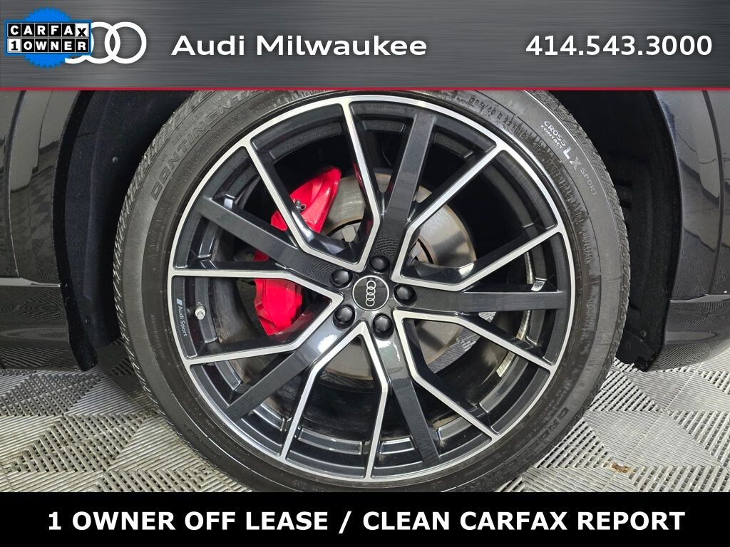 4-Zone Automatic Climate Control, Adaptive suspension, Alloy wheels, Audi Adaptive Cruise Assist w/Lane Guidance, Auto High-beam Headlights, Auto-dimming Rear-View mirror, Bang & Olufsen 3D Premium Sound System, Black Optic Package, Black Roof Rails, Contour/Ambient LED Interior Lighting Package, Convenience Package, Exterior Parking Camera Rear, Front Seats w/Ventilation, Heated Front Bucket Seats, Heated Steering Wheel, High-Gloss Black Exterior Elements, Illuminated Door Sills, Leather Seating Surfaces, Memory seat, Outside temperature display, Power Liftgate, Power moonroof: Panoramic, Premium Plus Package, Rain sensing wipers, Red Brake Calipers, S Line Exterior, S Line Fender Badges, S Line Illuminated Door Sills, S Line Plus Package, S Line Style Package, Security system, Top View Camera System, Wheels: 22" 5-V-Spoke-Star Design Bi-Color Finish.