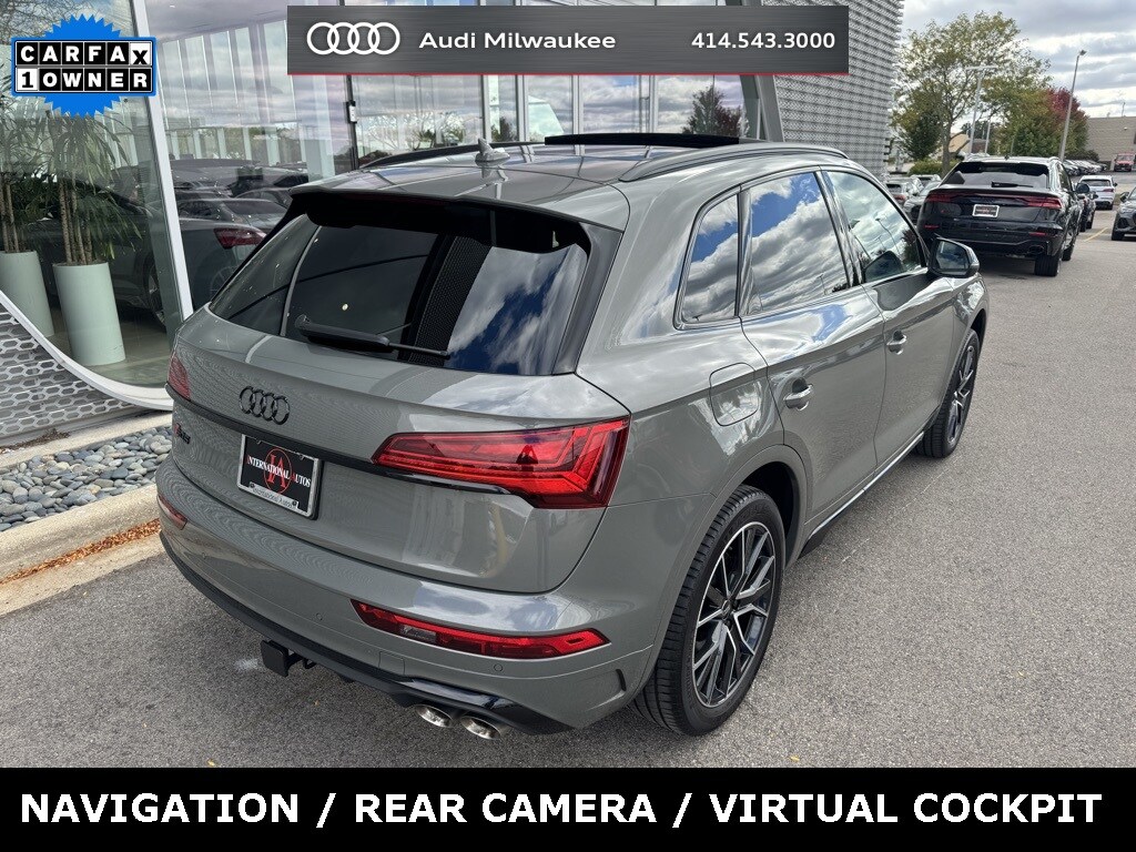 CARFAX One-Owner. Clean CARFAX. Chronos Gray Metallic 2023 Audi SQ5 Premium Plus quattro quattro 8-Speed Automatic with Tiptronic 3.0L TFSI Adaptive suspension, Alloy wheels, Audi Active Lane Assist, Audi Advanced Key, Audi Black Rings & Badges, Audi S Beam - Front Doors Only, Audi Virtual Cockpit Plus, Auto High-beam Headlights, Auto-dimming Rear-View mirror, Automatic temperature control, Bang & Olufsen 3D Sound System, Black Exterior Mirror Housings, Black Exterior Trim, Black Optic Package, Compass, Convenience Package, Driver Seat Memory, Electronic Stability Control, Exterior Parking Camera Rear, Fine Nappa Leather Seating Surfaces, Fine Nappa Leather Seats, Hands-On Detection Steering Wheel, Heated Front Sport Seats, Heated Steering Wheel, Leatherette Covered Center Console, Navigation Package, Navigation System, Panoramic Sunroof, Power Liftgate, Premium Plus Package, Radio: MMI Navigation Plus, Rain sensing wipers, Security system, Sport Exhaust Tips, Sport steering wheel, Top View Camera System, Traffic Jam Assist, Trailer Hitch, Wheels: 20" 5-V Spoke-Star Design.