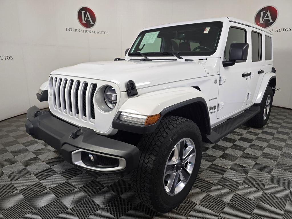 Clean CARFAX. Bright White Clearcoat 4D Sport Utility 2021 Jeep Wrangler Unlimited Sahara 4WD 8-Speed Automatic 3.6L V6 24V VVT